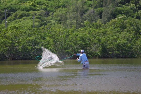 Breathtaking as the location was, Nick and I were heading 50 yards back inland to the mangroves where he already had two float-tube boats set up and waiting. Our goal was to catch one of the many tarpon that live in these 50 acres or so of brackish waters ever mindful that tarpon are pretty skittish creatures and easily spooked.