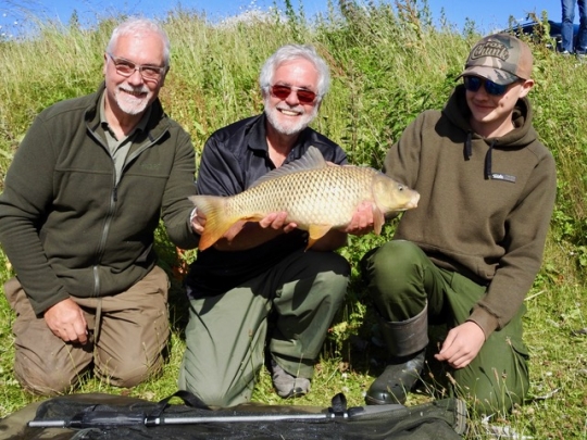 Back on the rods we had several more fish, Paul making sure that both Hayden and Jonjo had fish. We looked in detail at various baits for carp fishing and tying the basic no-knot rig, took a group photographs and all too soon it was time for the goodbyes, but just as we were saying our goodbyes to two of the younger juniors, Travis had another one toner and this was obviously a better fish. Paul was on the net, but this fish didn’t want to come in. Gradually it tired and at last it was in the net, a perfect birthday present. We started to pack away, but this time it was one of my rods that was away, another lively common. One final common, one final pic and it was time for home.