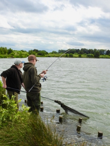 Paul was next to have a fish, this time using the “method” and Jonjo had his first experience of playing and landing a carp. Things couldn’t have been going better, we had a get together for a look at basic carp tackle and tactics, caught a couple more hard fighting carp which rudely interrupted one of my talks. Then it was time for a lunch break where we were treated to a mound of burgers and hotdogs, many thanks to Mick Jackson and Joanne and Alan Wakelin.
