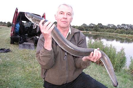 The huge eel came from a small commercial water Nev had been targeting for the species, fishing evening sessions as there is no night fishing allowed.
