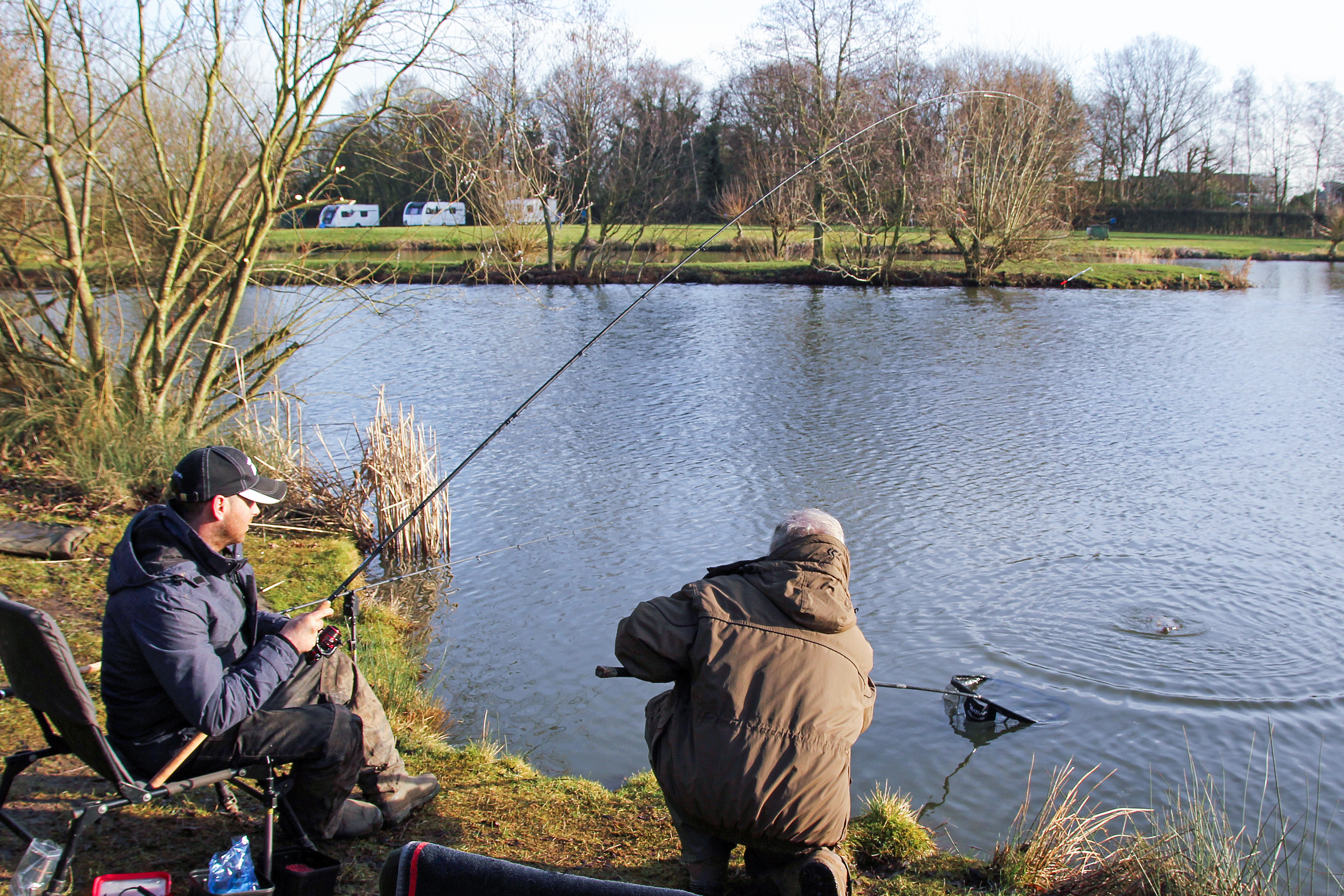 Date one was cancelled as the lake had a lid of ice on it, but our luck was in for date two! A mild south westerly breeze and a cloud free sky greeted us as we walked the gear to our chosen swims … perfect.