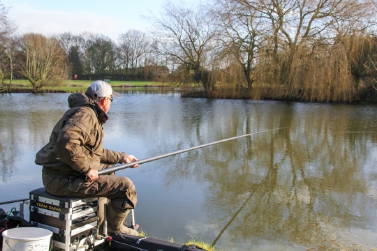 We talked through my approach. A simple waggler set-up on the float rod, and a running ledger on the feeder rod. To me the choice of bait and how you bait the swim is the critical area, so we spent some time discussing what we would be doing. I knew the swims we were fishing very well, the perch tended to crisscross the open water area but also regularly patrolled the margins, so we put a few large raw prawns in the open water area, and in the margin a more concentrated mix of red maggots and chopped prawns. We did this first before sorting the gear, so the fish had time to find the bait without any lines in the water.