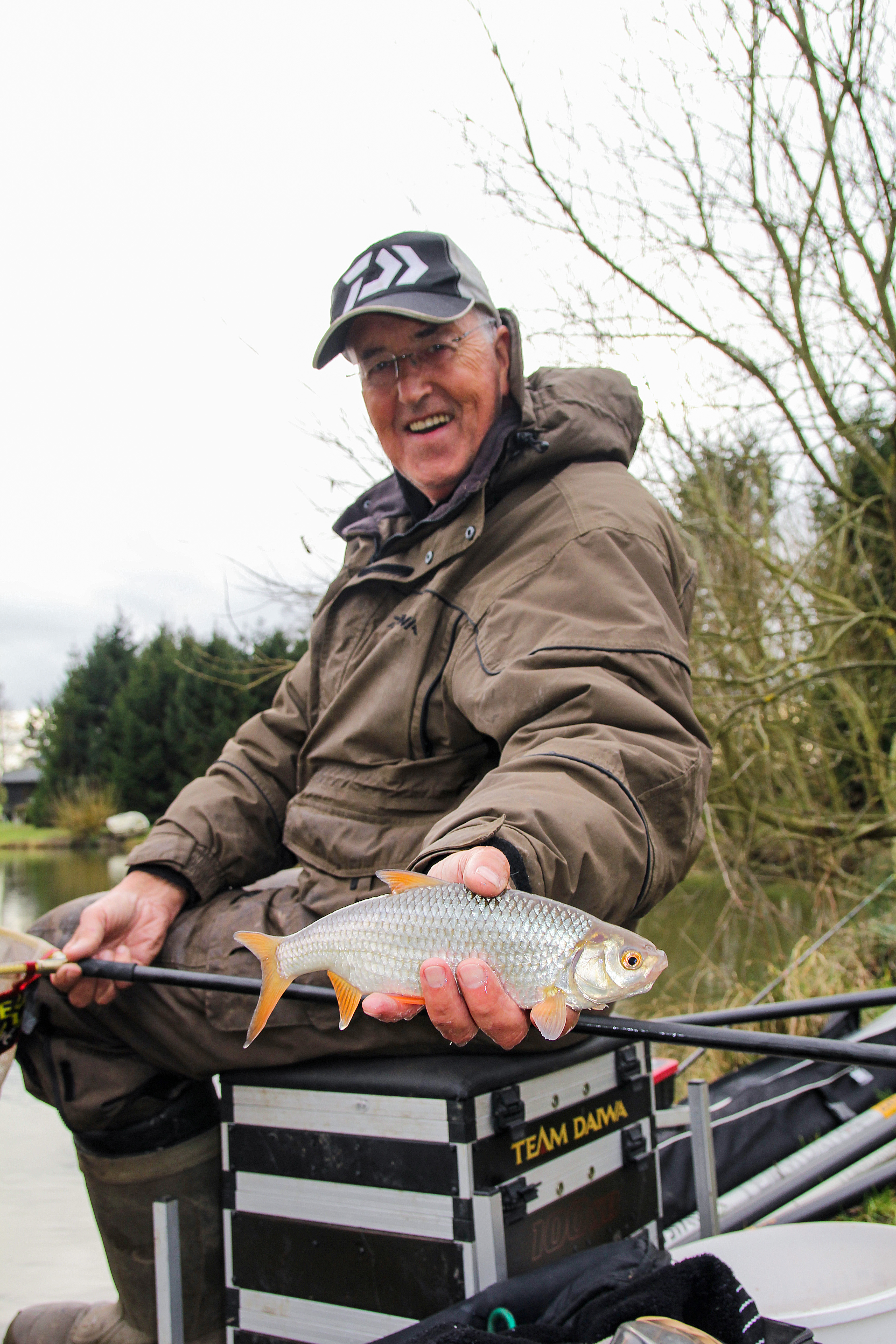 The day turned out to be a red-letter day in more ways than one. I’d mentioned to fellow Daiwa Consultant Bob Roberts that I was going to Westerly and as he was free suggested he join us. Bob had fished Westerly before and readily agreed. Bob was well aware that Westerly contained a lot of quality roach, so decided to make them his target. Fishing maggot shallow on the pole at 8 metres Bob was in his element catching roach after roach. Although the lake does not normally allow keepnets, Geoff had made an exception for the prize day and what a net of fish Bob amassed. We had intended to take a full net shot but there were simply too many, so Bob just kept a few back for a picture and gently let the rest swim off over the net rim.