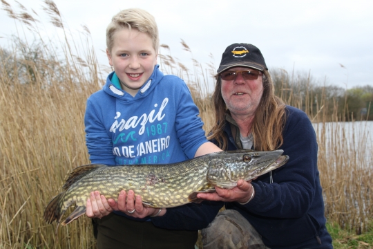 Spread over two ponds, Hawk and Grebe, on the H&DAA Bough complex it was already very busy, with anglers setting up, as I arrived. I found Andy, sorted where I was fishing and started getting organised, but before I was finished, I had a call to go over to Hawk pond and take some pics of the first pike of the day. On my way back, I also watched another youngster being helped with playing the first carp of the day, this time on Grebe pond. A great start, time I got my rods out!