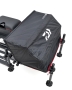 Designed for their respective Slide Tray, simply slide retention strap and the brackets along the short edges, tightening into place. The canopy ribs can also be tightened and loosed to suit. The rear edge of the canopy has zippered access through double two way zips.